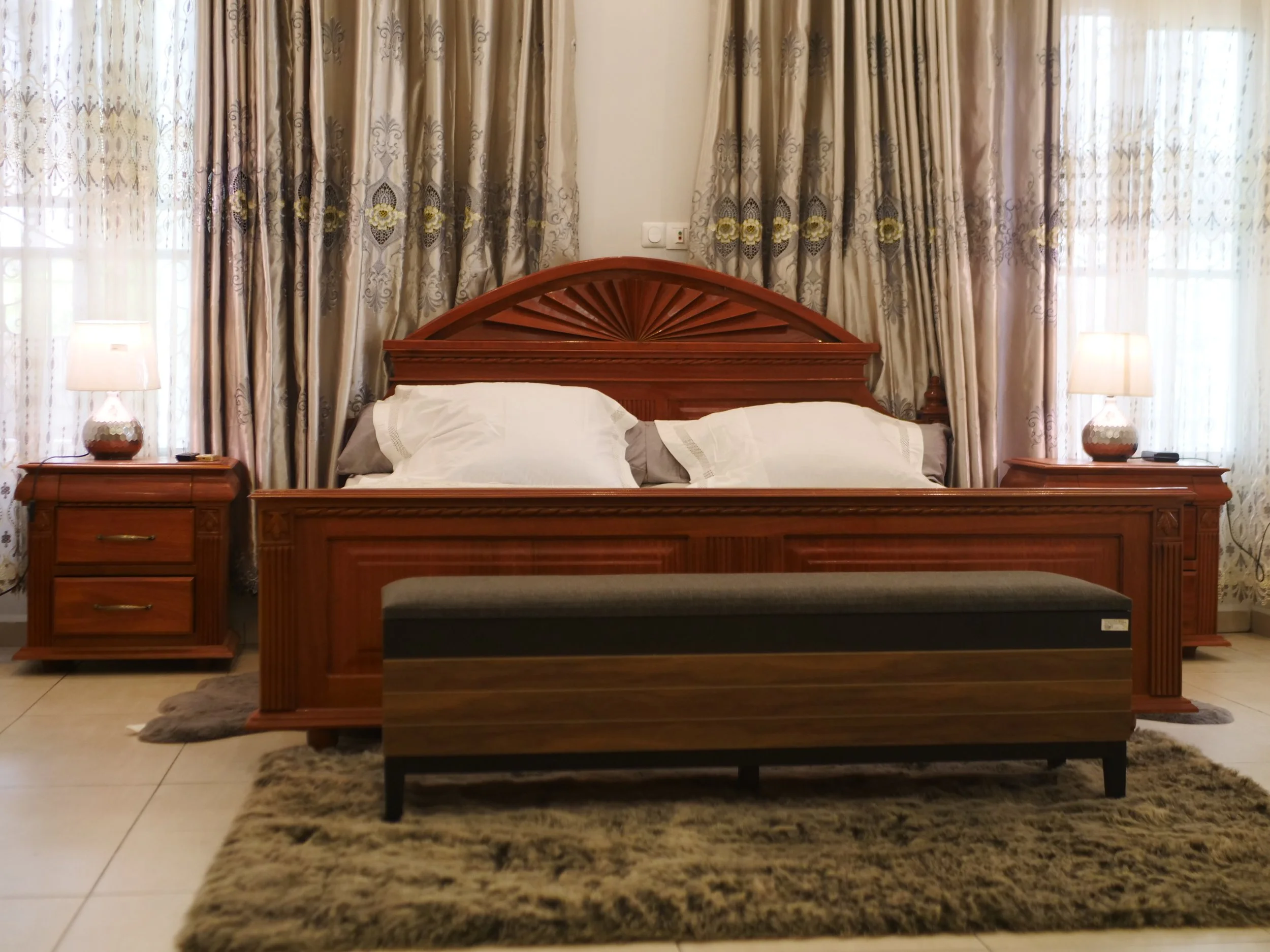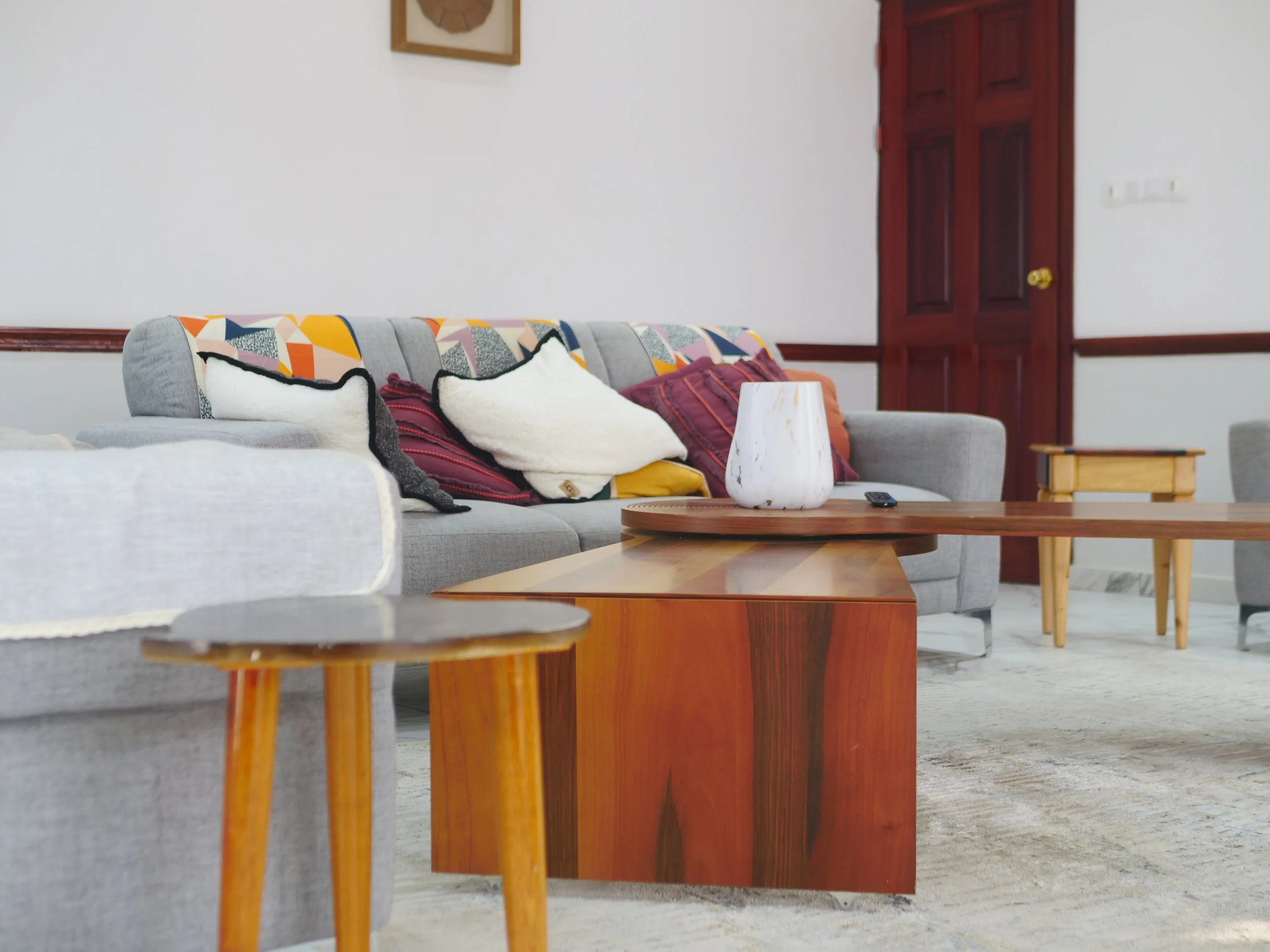 The Royal Suite is a 3 bed room apartment on the 1st floor, overlooking the swimming pool and nature. It is a spacious, open floor plan with a total area of 1,776ft² and equipped with luxury amenities for your confort. It has amenities such as; double size orthopedic bed, air condition, 42” smart TV, smoke detector, a convenient door bell for visitors, Click here for more amenities.